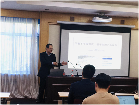 20201024日,球探比分网 博士研究生高端学术讲坛2020年第1期在中心校区邵逸夫科学馆第五会议室举行,中国人民大学应用经济球探比分网 副院长魏楚教授应邀作“消费不平等测度:基于能源的新视角”主题报告,活动由球探网篮球比分 副院长孙涛教授主持,球探比分网 相关领域教师和硕士、博士研究生代表共同聆听了此次报告。