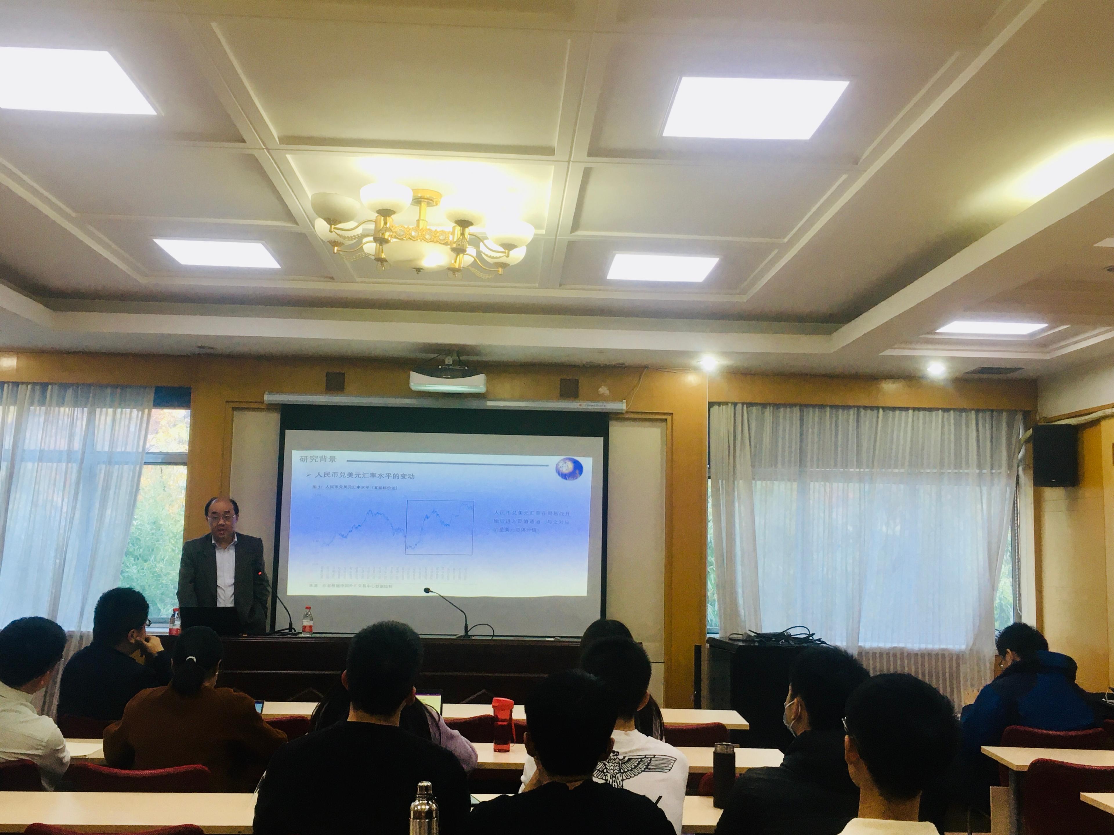 20201115日,球探比分网 2020年第5期“博士研究生高端学术讲坛”在中心校区邵逸夫科学馆东二层第五会议室举行,教育部“青年长江学者”、厦门大学王亚南球探比分网 副院长周颖刚教授应邀作“中美贸易战下的汇率变动、生产网络与股市反应”的主题报告,活动由球探比分网 副院长孙涛教授主持,球探比分网 相关教师和硕士、博士研究生共同聆听了此次汇报。