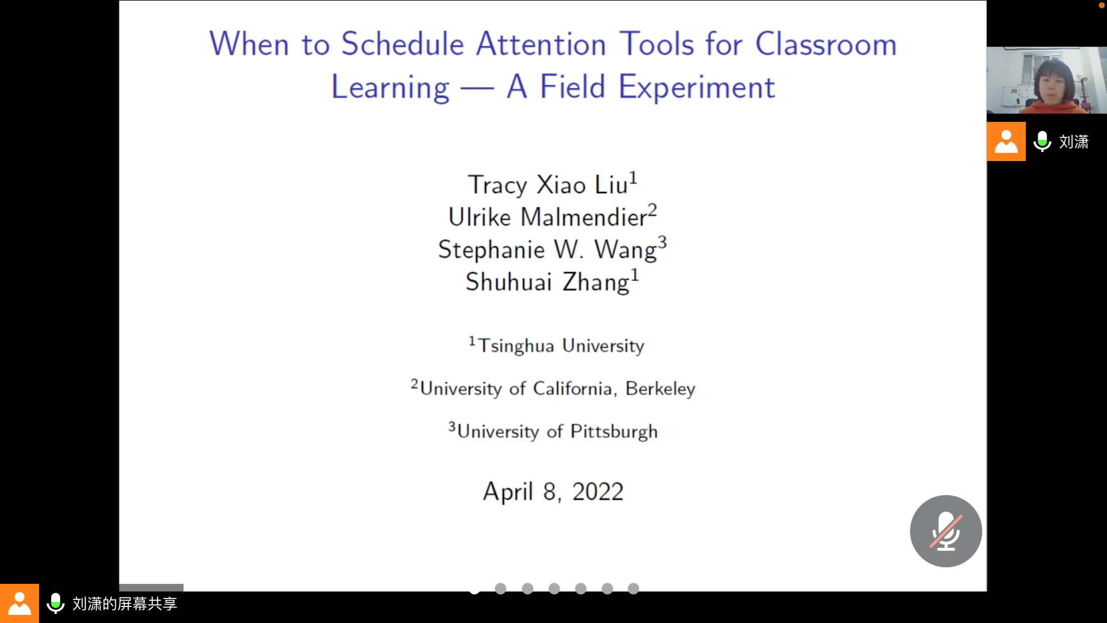 刘潇老师应邀做了题为“Encouraging Engagement in Classroom Learning: A Field Experiment”的主题报告。球探比分网