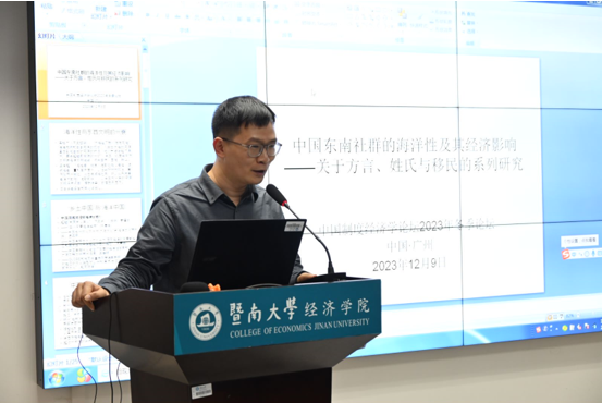 /华侨华人研究院副教授赵子乐分别做了题为《清代北疆地区的贸易与金融制度创新——以归化城的谱拨体系为中心》、《华侨华人的创业精神》、《中国东南社群的海洋性及其经济影响》的报告。该阶段报告由暨南大学经济球探比分网