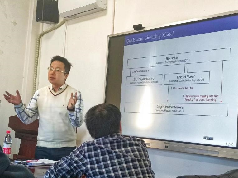 在演讲开始时,高教授从广为人知的高通反垄断案出发,介绍了本文的主要议题:垂直相关市场中的交叉许可。他指出,高通公司在静态环境中采用反向许可的做法,以及政府考虑动态效率的反垄断措施都是正确的。基于此,本文开发了一种垂直相关市场的反向许可模型。它主要分析了两家下游企业在同质商品市场中与一家上游垄断供应商提供中间产品的古诺竞争。该模型设置了两类技术转移情景:一是在基准上,创新后的下游企业不进行技术转移;其次,在反向许可下,每个下游公司都可以通过与上游公司签订免费的交叉许可协议来获得其竞争对手的技术。此外,本文还将补救措施纳入模型。