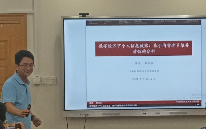 教授帅杰作了题为“数字经济下个人信息披露——基于消费者多维异质性的分析”的报告。报告从消费者信息多维性出发,建立动态空间竞争模型,通过梳理大数据技术发展以来企业定价策略的变化,研究企业杀熟动机及其对于消费者福利和社会福利的影响,分析市场演变的动态过程。研究发现:随着企业数字化能力的不断增强,可利用的消费者信息由单维转向多维,市场均衡结果将呈现非线性变化,竞争程度先增强后减弱,企业利润先下降后上升,消费者福利先增加后减少。