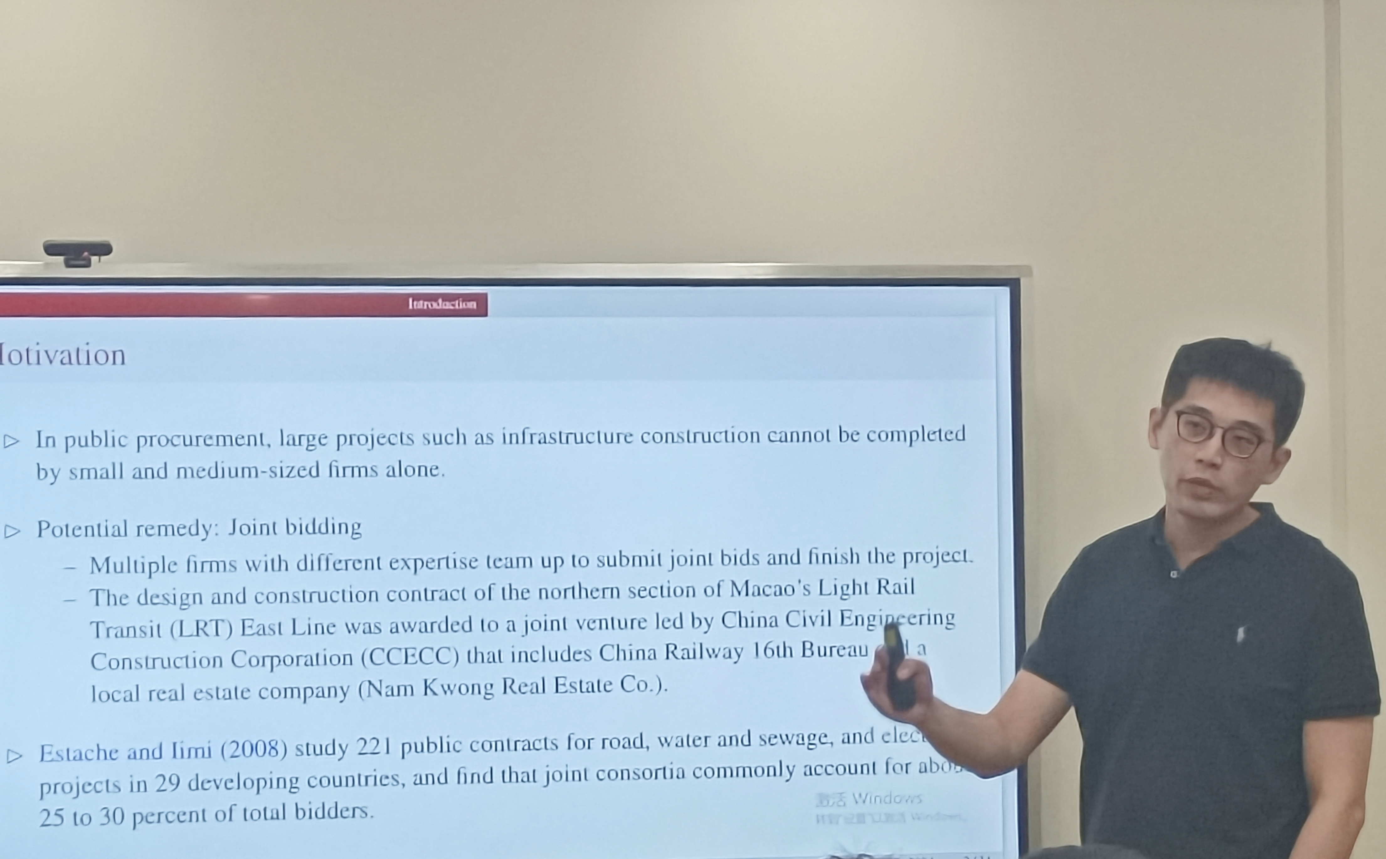 长聘副教授吴泽南作了题为“Joint Bidding and Information Frictions”的报告。报告指出在一些企业必须合作完成项目的公共采购中,允许互补企业联合投标是促进竞争的自然方式。研究将联合投标与VCG拍卖进行比较,其中VCG拍卖允许互补的公司在不形成联盟的情况下独立投标。研究发现在没有信息摩擦的情况下,联合招标优于VCG拍卖,能够以较低的采购价格实现充分的配置效率。然而,由于企业的非分类匹配或联盟内的战略行为,信息摩擦会阻碍联合招标,使其在配置效率和采购价格方面比VCG拍卖表现更差。