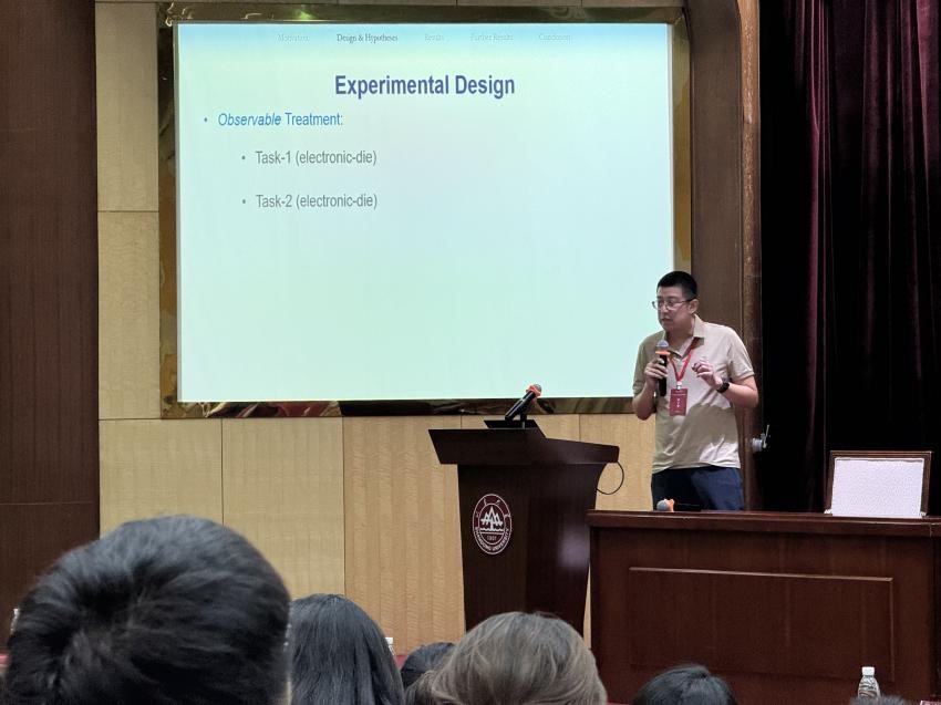 上海财经大学教授杜宁华杜教授进行了题为”Spillover Effects of Lie Detection: An Experimental Investigation”的报告。杜教授指出撒谎是日常生活中的一种普遍现象,为了评估提升诚信水平的政策干预的总体影响,不能忽视某一测谎任务的溢出效应。杜教授通过实验研究了诚信促进法规是否存在多任务间的溢出效应。杜教授指出,在一项报告任务中,让私人信息可验证或者对不诚实行为施加惩罚的做法,都会导致其他报告任务中撒谎发生概率的提升。这种撒谎的溢出效应意味着,当面对多个可能存在作弊行为的任务时,人们具有跨任务的心理偏好,并提交相互关联的报告。基于这份研究的发现,政策制定者应该采取全面的视角,考虑更广泛的领域,而不是仅仅专注于针对某一具体任务的规则设计。