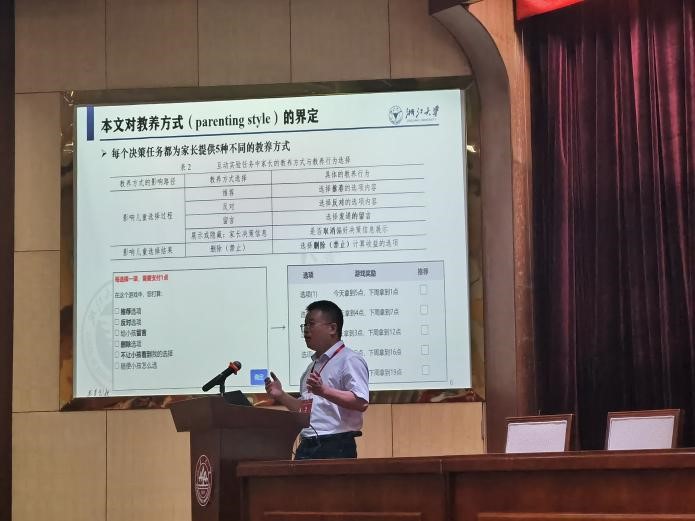 浙江大学陈叶烽教授作了题为《相对贫困地区的教养方式:一个家庭互动的实地实验》的报告。陈教授基于对湖南省怀化市新晃县这一欠发达地区的学校开展实地实验研究,从家庭内部微观决策的视角来探究教养方式对儿童行为决策的影响。陈教授指出,该研究的重要贡献体现在以下方面:实验环境模拟了现实中可控的“互动”环节;聚焦欠发达地区的家庭教育问题,关注儿童实际照料者的教育投入,有助于发现家庭互动不足或失效背后的症结所在。陈教授通过实地实验研究说明了家庭教育的重要性,并且厘清了不同教养方式对儿童行为偏好的塑造作用。