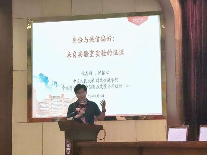 中国人民大学代志新教授进行了题为《身份与诚信偏好:来自实验室实验的证据》的报告。代教授通过实验方法探讨了身份认同对诚信行为的影响,特别是在不同职业群体中诚信偏好的差异。实验设计包括掷骰子任务,比较了学生群体和公务员群体在实验收益影响下的诚实报告行为。结果显示,相比于学生,公务员群体在实验中表现出更高的诚信水平,这可能与职业身份和社会责任感有关。实验还观察到职业身份、年龄和党龄等因素对公务员诚信行为的显著影响。年长、职位较高和党龄较长的公务员更倾向于诚实行为。这些发现体现了职业规范和职业身份在形成和促进诚信行为中的重要作用。通过比较不同职业群体,研究揭示了身份认同和职业环境对诚信行为的深远影响,为设计有效的诚信建设政策提供了实证支持。