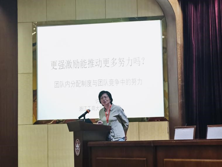 浙江工商大学许彬教授作了题为《更强激励能推动更多努力吗?——团队内分配制度与团队竞争中的努力》的报告。许教授探讨了团队内分配制度对团队竞争中成员努力程度的影响,并采用实验经济学方法分析不同分配制度下的努力水平和财富分配状况。研究通过模拟不同的分配制度,比较了不同制度对团队内成员努力程度的激励效果。实验结果表明,相比于平均分配,各种比例分配制度均能显著提高团队成员的平均努力水平。然而,在极端比例分配制度下,成员努力水平会出现两极分化。财富分配结果显示,比例分配制度减少了团队内的财富水平,并提高了团队内和团队间的财富不平等性。比例分配和次比例分配在提升团队努力水平方面表现较为优越,而赢者通吃制度则导致了显著的努力分化和财富不平等。