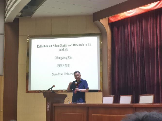 上海交通大学秦向东教授作了题为”Reflection on Adam Smith and Research in BE and EE”的报告。秦教授指出亚当·斯密的两部重要著作,《道德情操论》和《国富论》,分别从伦理和经济两个角度阐述了人类社会秩序的形成及其运作机制。在《道德情操论》中,斯密提出了人类行为动机的基本原则,强调人类行为受到自利和社会期望的双重驱动。在《国富论》中,斯密进一步探讨了经济活动中的人类社会性,提出了“交换、买卖的倾向”这一发现性公理,强调了交换在财富创造中的核心作用。亚当斯密的伦理和经济思想结合了自利与道德动机的平衡,强调了社会规范和制度在行为调节中的作用,为现代行为经济学和实验经济学研究提供了理论基础。