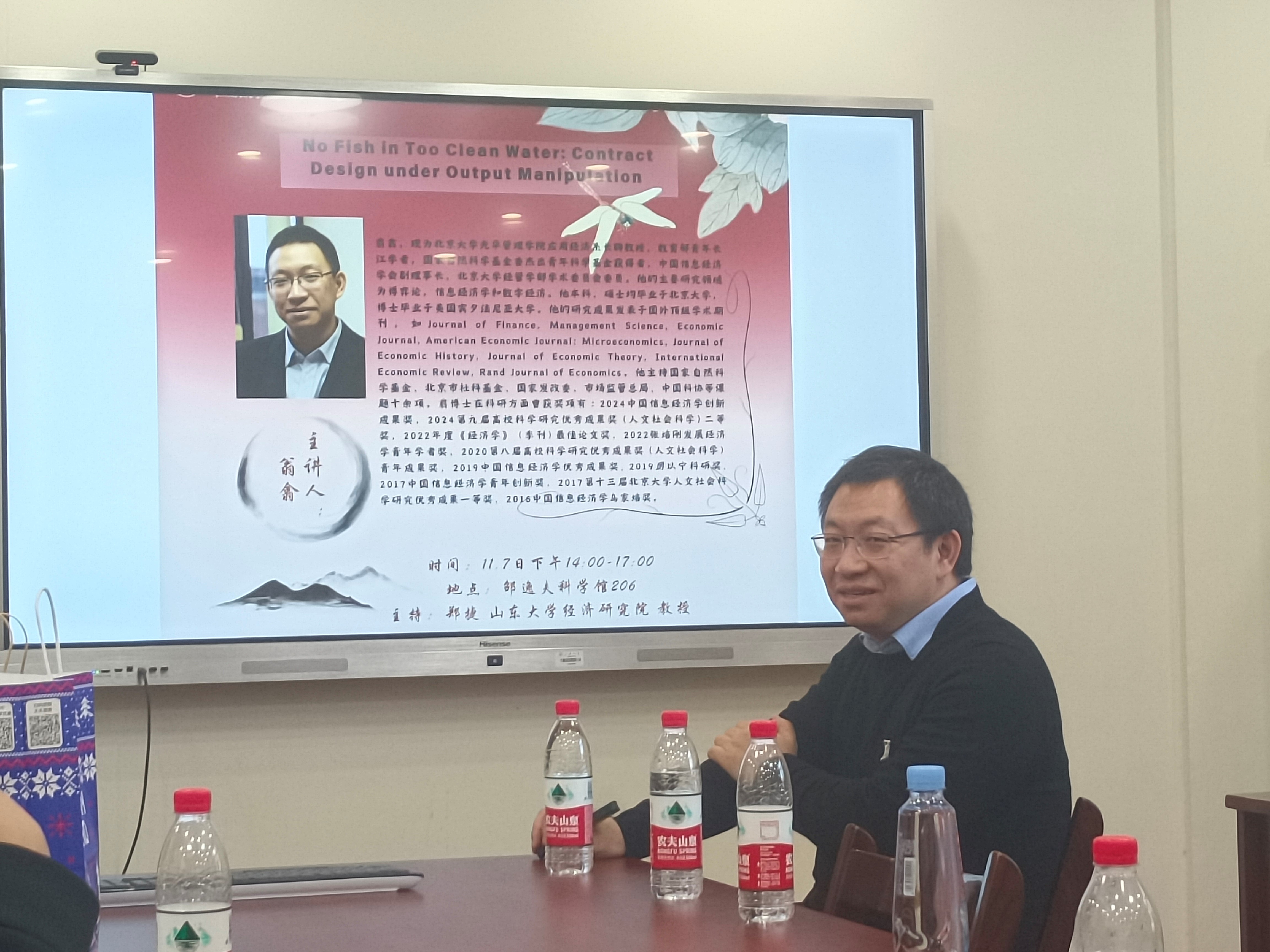 邀请,开展了主题为“No Fish in Too Clean Water: Contract Design under Output Manipulation”的学术报告。球探网篮球比分