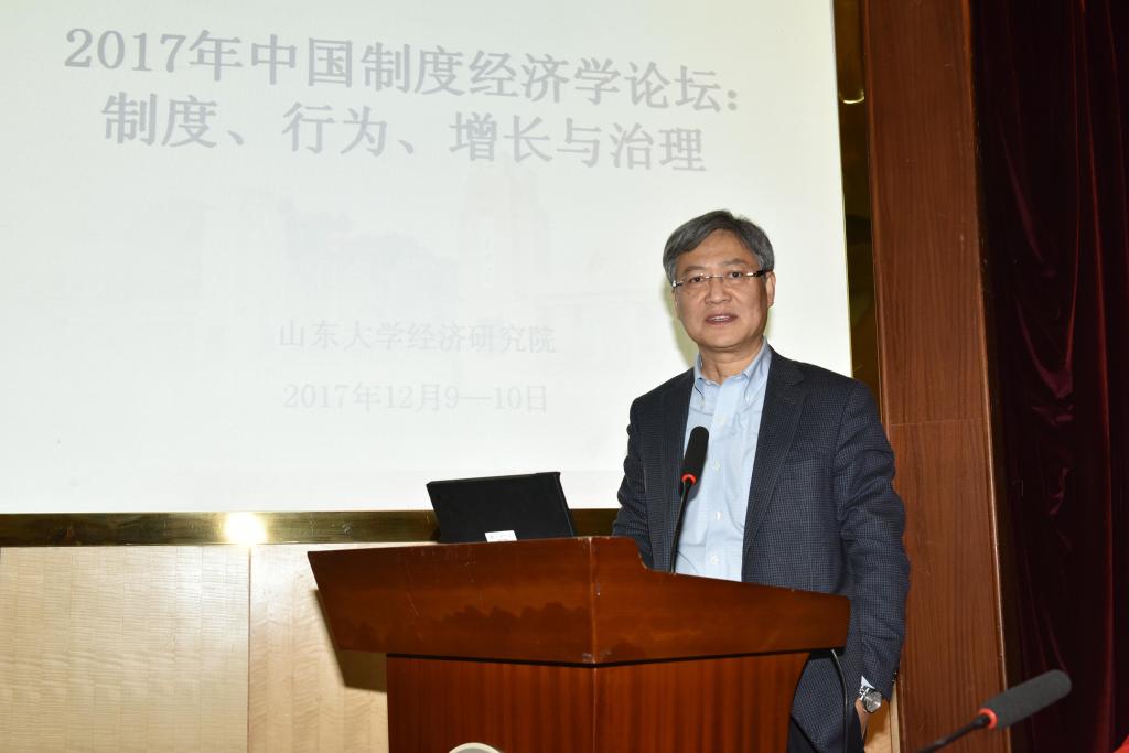 2017129-10日,2017年度“中国制度经济学论坛”在山东大学成功召开。“中国制度经济学论坛”由球探网篮球比分 和《制度经济学研究》编辑部共同主办,论坛主题为“制度、行为、增长与治理(IBGG)”。山东大学党委常务副书记李建军研究员出席会议并在开幕式致欢迎辞。教育部“长江学者”特聘教授、球探网篮球比分 院长黄少安教授主持开幕式并致辞。