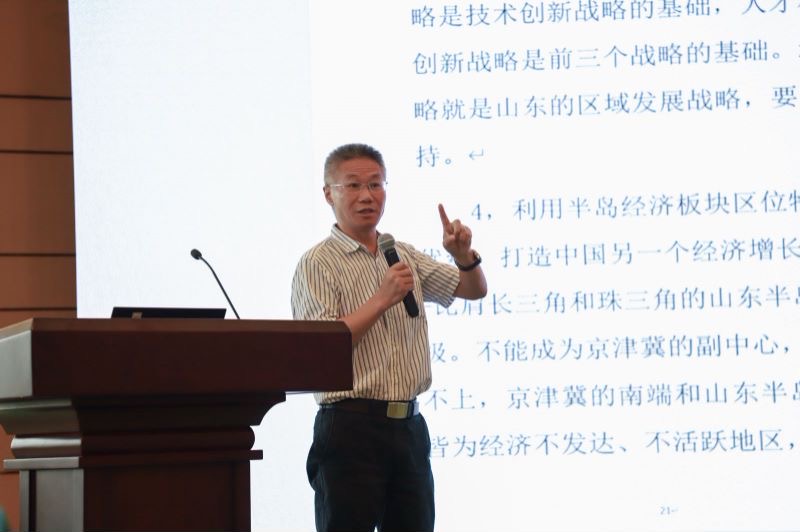 会上,来自全国各领域、各地区的9位知名专家学者围绕“十四五”区域发展战略与山东高质量发展发表主题演讲,为山东“十四五”规划和实现高质量发展出谋划策。大会主题报告分两阶段依次进行。第一阶段主题报告由省政府发展研究中心副主任张彧主持,浙江大学经济球探比分网 教授、宁波大学商球探比分网 特聘院长金祥荣教授就“新发展格局中山东的定位和战略转型”进行剖析,强调了山东在“内外双循环”中的应有作为。