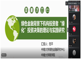 2020年第10期“博士研究生高端学术讲坛”通过腾讯会议在线上举行,中南大学危平教授应邀作“绿色金融背景下机构投资者‘绿化’投资决策的理论与实践研究”的主题报告,活动由球探比分网