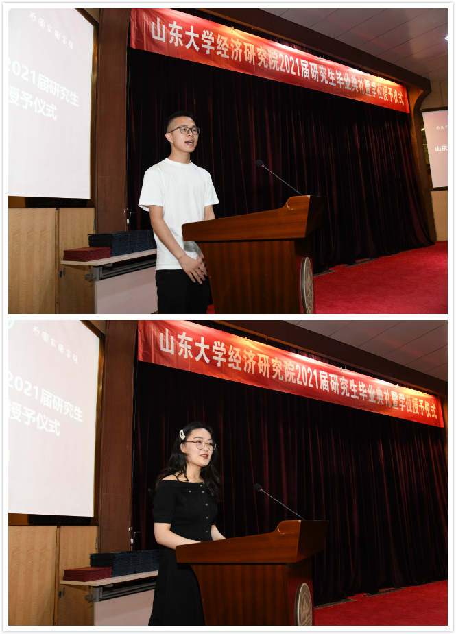 之后,毕业生代表2018级硕士张汝彬、2018级博士李亚飞分别发言,他们回顾了在经研院收获的知识与智慧、同窗情谊和生活经验,在球探比分网