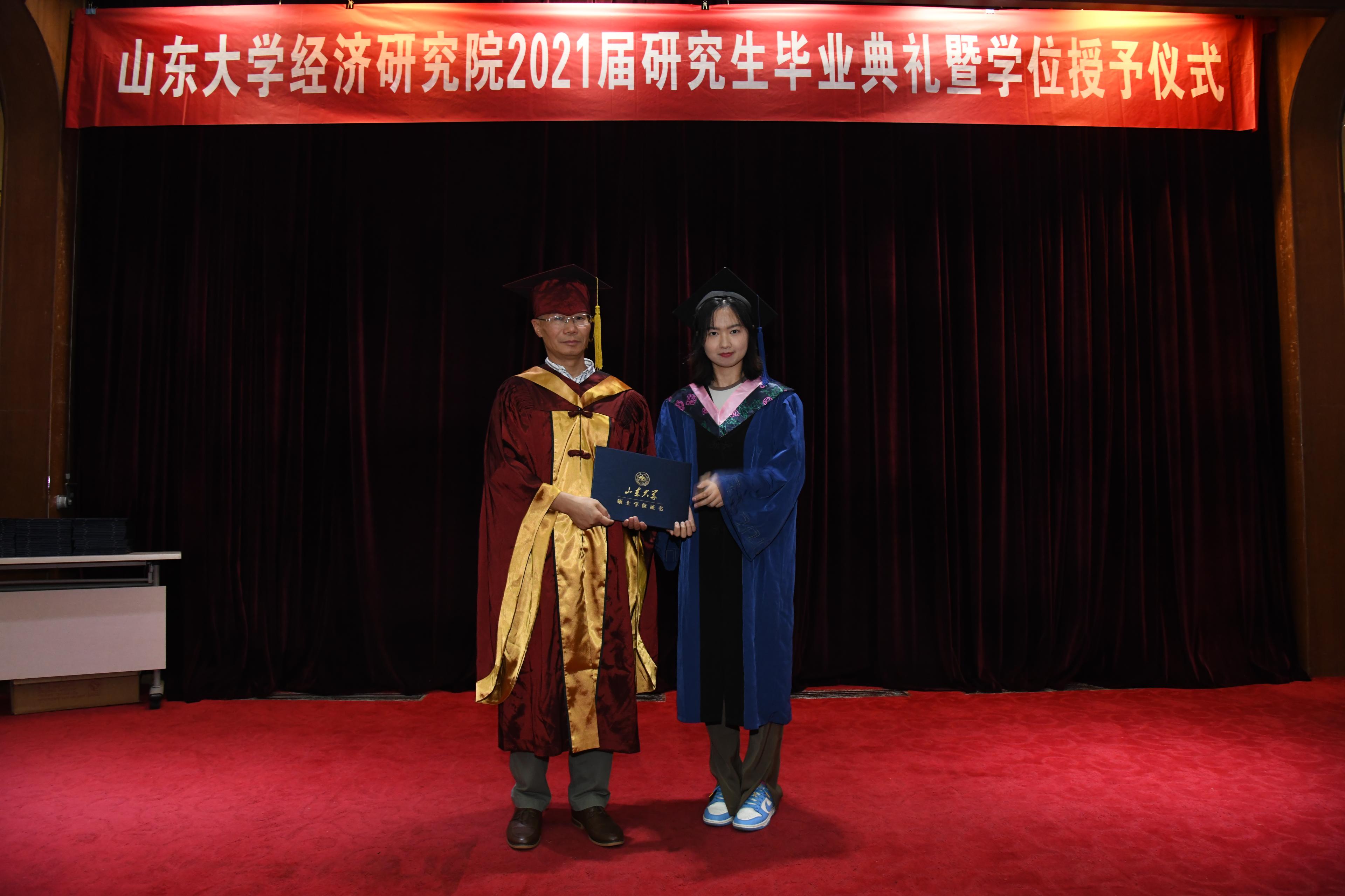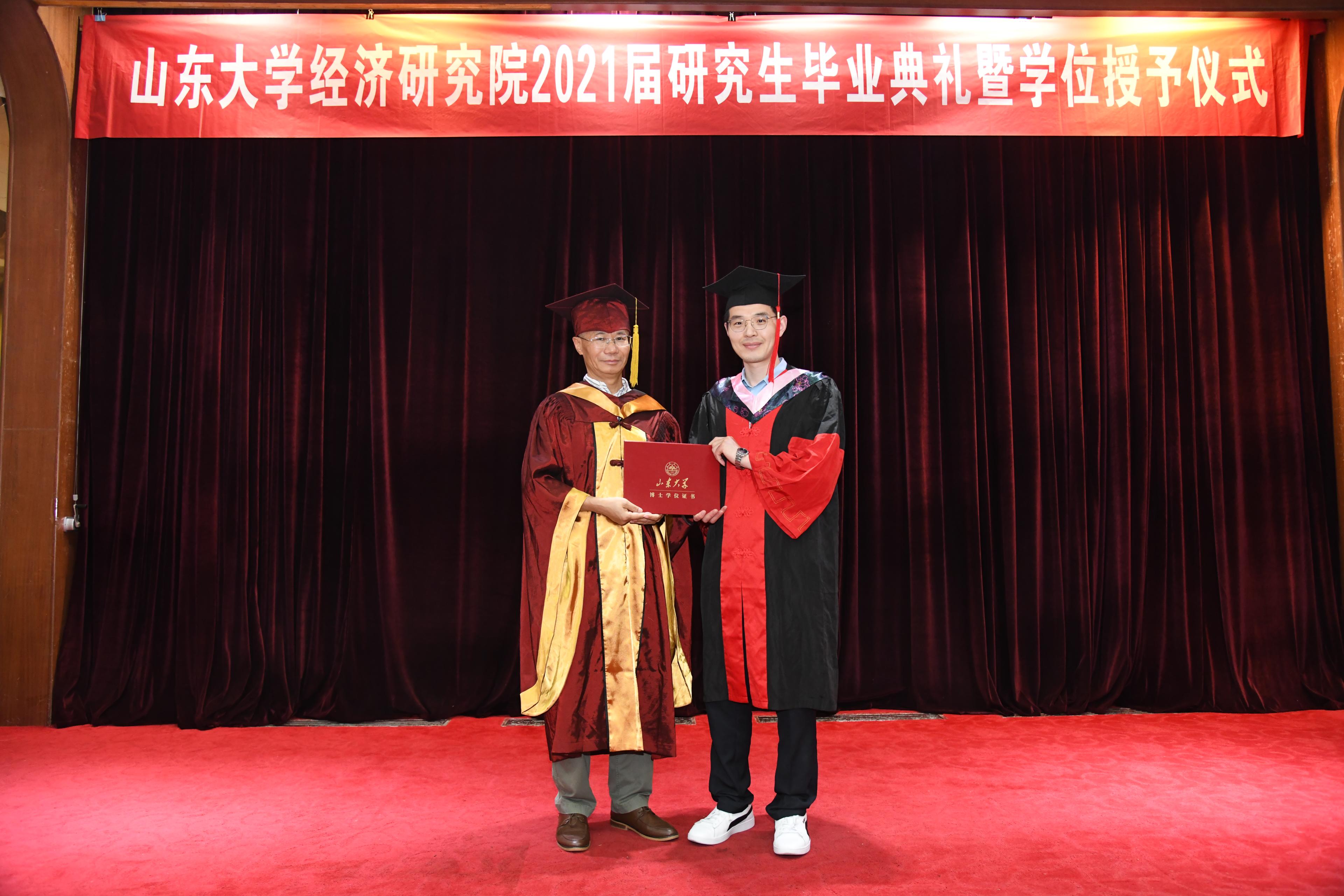 致辞后,黄少安院长为每位毕业研究生颁发学位证书并依次拨穗合影。在铿锵悠扬的《山大校歌》、《二十年后再相会》歌声中,毕业典礼顺利结束,各位毕业生的经研院时光画上了圆满句点。