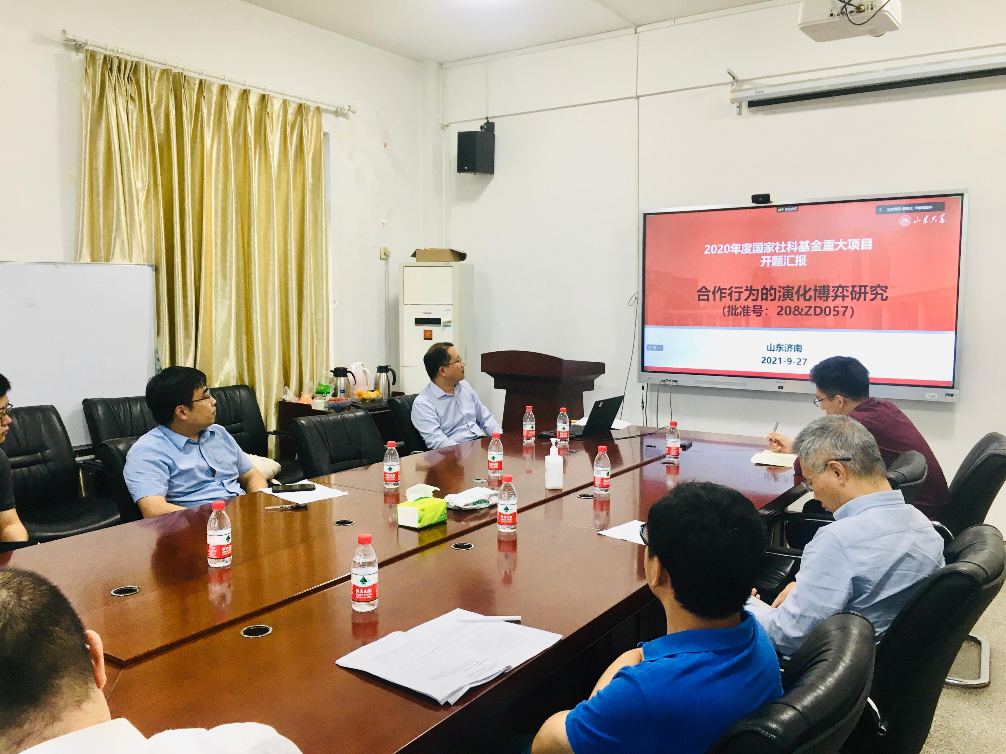 韦倩教授任首席专家的国家社科基金重大招标项目“合作行为的演化博弈研究”开题论证会在中心校区邵逸夫科学馆401会议室和腾讯会议线上平台顺利举行。国家万人计划领军人才、中央党校(国家行政球探比分网