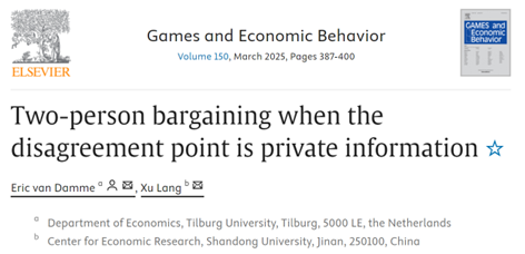 副研究员郎旭与荷兰蒂尔堡大学Eric van Damme教授合作论文Two-person Bargaining when the Disagreement Point is Private Information发表于Games and Economic Behavior,二人为共同一作,这是球探比分网