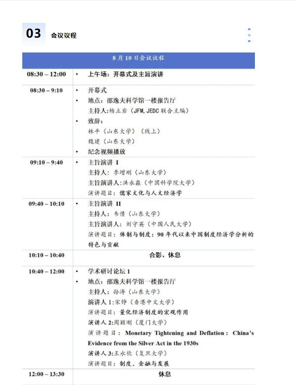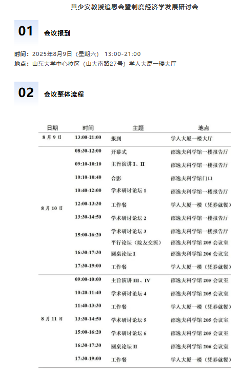 会议日程|黄少安教授追思会暨制度经济学发展研讨会
