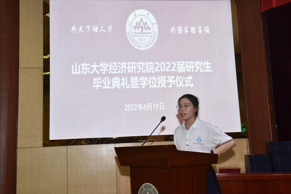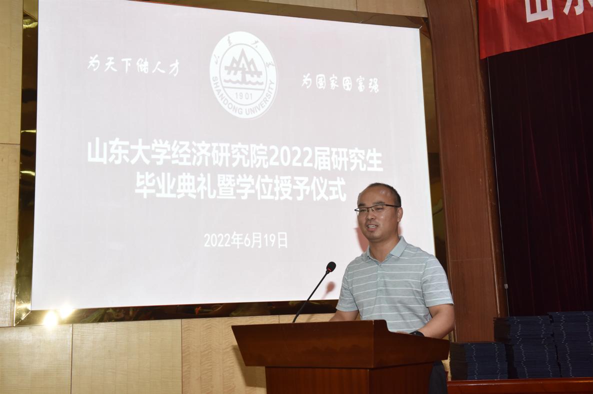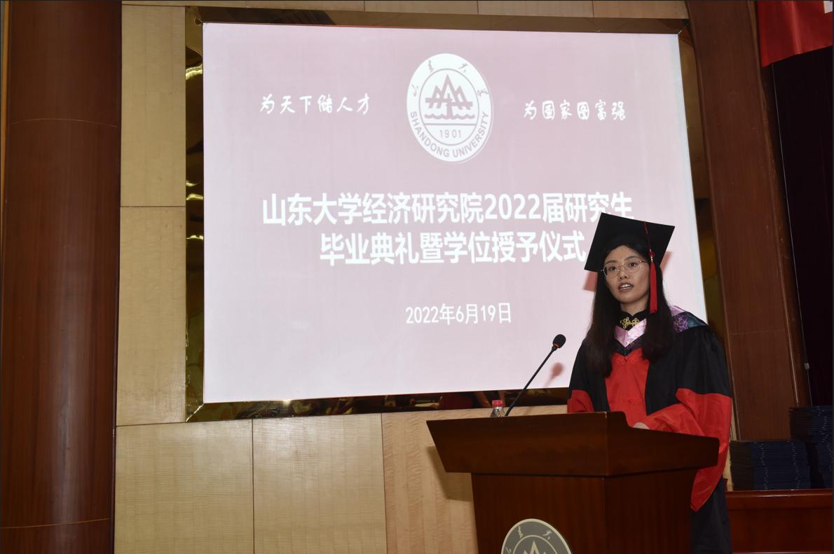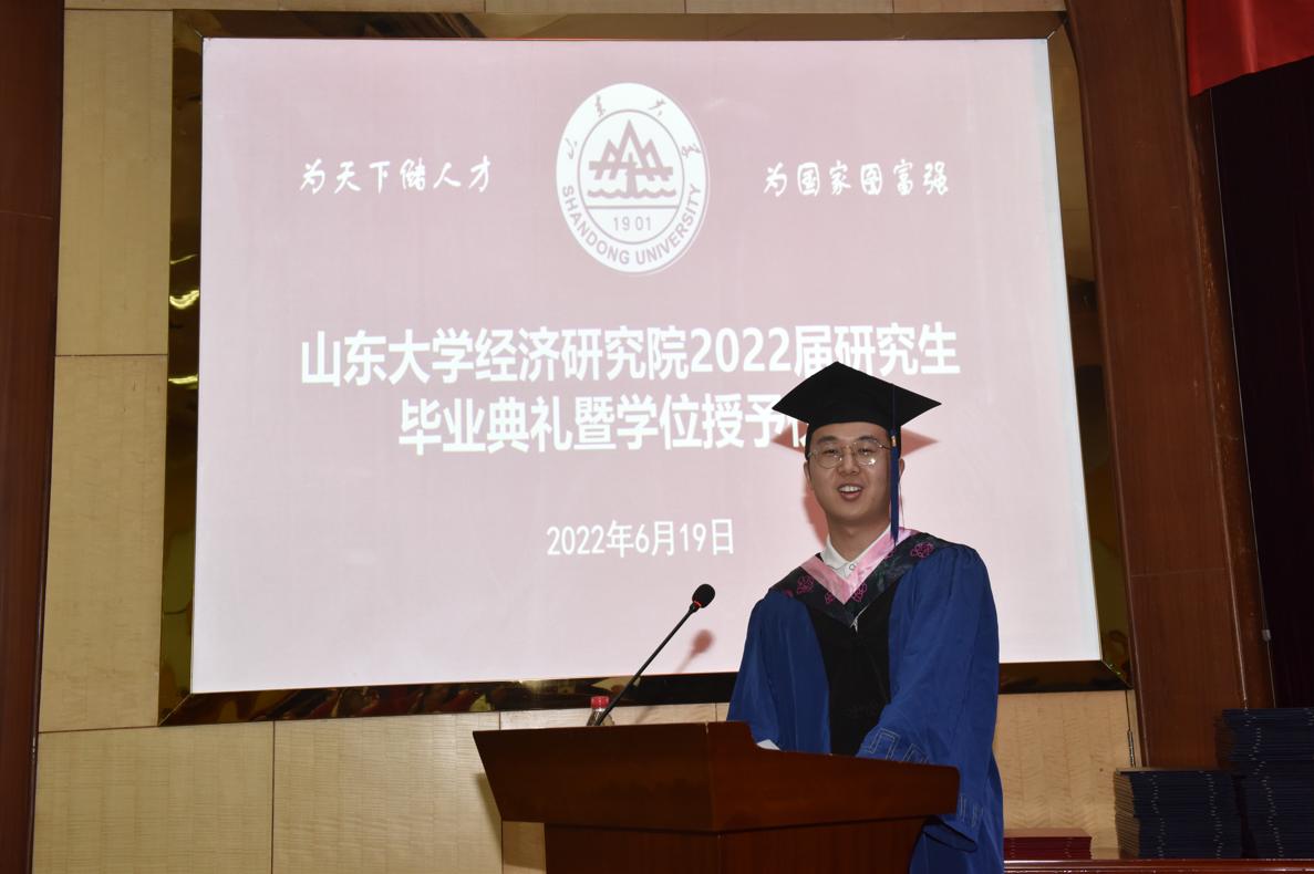 提供了宝贵的学术平台以及在日常生活、科研工作等诸多方面的帮助。并提及在研究生生涯中,大小事件不断交汇,从见证者到参与者的转变过程中,离不开国家与社会的支持,离不开山大经研院老师们的培养,离不开家长的支持,鼓励大家将个人命运投入到国家、社会的发展需要中去。