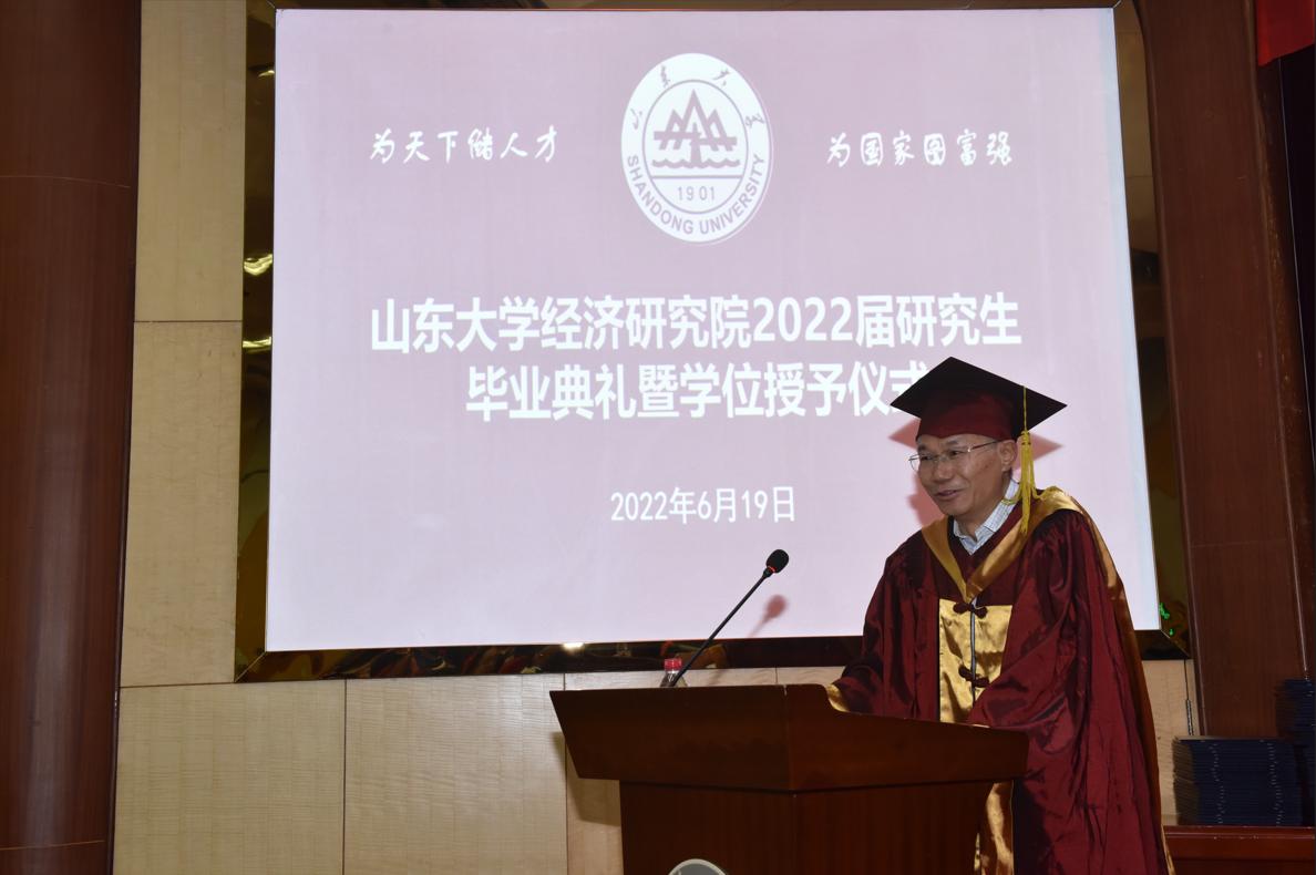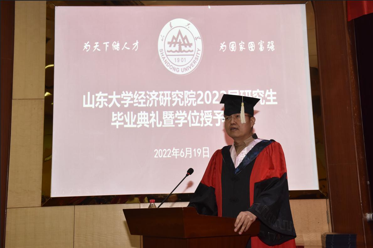 致辞后,黄少安院长为每位毕业研究生颁发学位证书并依次拨穗合影。在铿锵悠扬的《山东大学校歌》声中,毕业典礼顺利结束,各位毕业生的经研院时光画上了圆满句点。