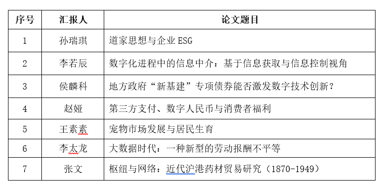 每年开展一次研究生经济学学术论文比赛征文。今年于2025年2月开始征文,经过初选打分及老师评议,共有12篇论文入围论文答辩会。现定于2026年1月4日(周日)下午2点,在知新楼C座201教室进行一、二等奖论文答辩。请各位入围者准备好答辩PPT(博士组每人陈述15分钟,硕士组每人陈述10分钟)以及15份纸质版答辩论文,按照以下博士组、硕士组的分组顺序依次答辩。