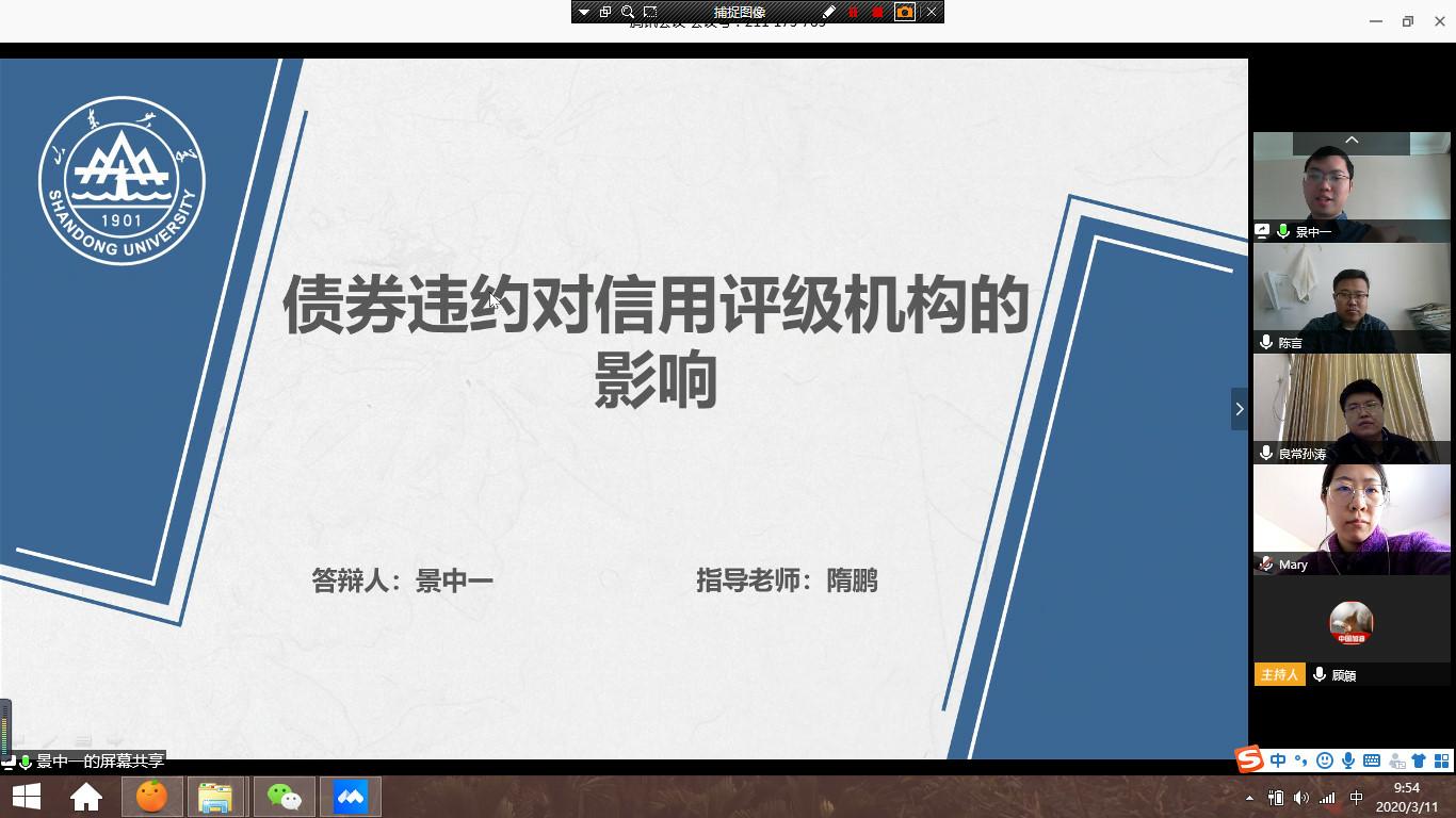 1名金融学硕士生首次通过在线视频形式完成学位论文答辩。