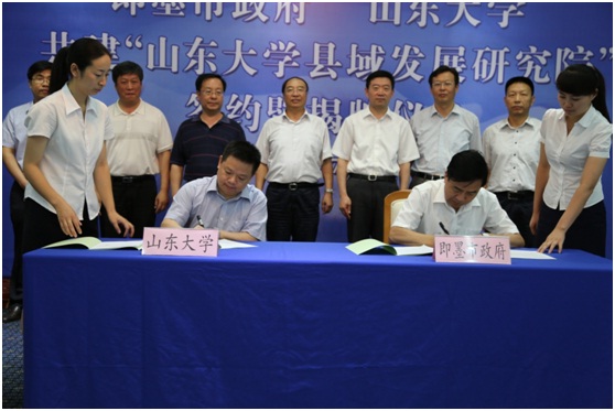 7月9日,山东大学县域发展研究院签约及揭牌仪式在青岛即墨市举行。山东大学党委书记李守信、常务副书记李建军、常务副校长王琪珑、总会计师曹升元,即墨市委书记、青岛蓝色硅谷核心区管委会党工委书记刘赞松等出席签约仪式。