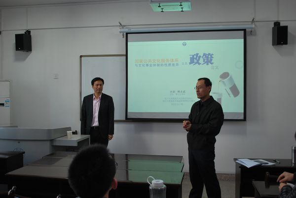 2013年12月1日上午9时,武汉大学傅才武教授应邀来球探比分网 进行学术交流,在邵逸夫科学馆408教室为我们带来了题为“我国文化管理体制改革研究”的精彩讲座。本次讲座由魏建老师主持,球探比分网 硕士生与博士生参与了此次讲座。