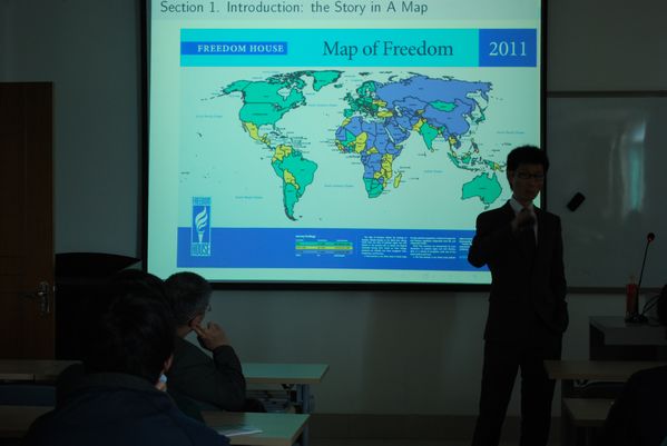 2013年第四期Seminar(总第34期)系列讲座在邵逸夫科学馆513顺利举行。来自University of Warwick的Xuezheng CHEN做了题目为《A Theory of Divide-and-Rule: Kleptocracy and Its Breakdown》的学术报告。黄凯南教授主持了本次报告会,黄少安、魏建、林晨、周洪涛、吴吉林、叶海云、蒋金山等老师参加了此次讲座。