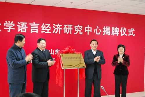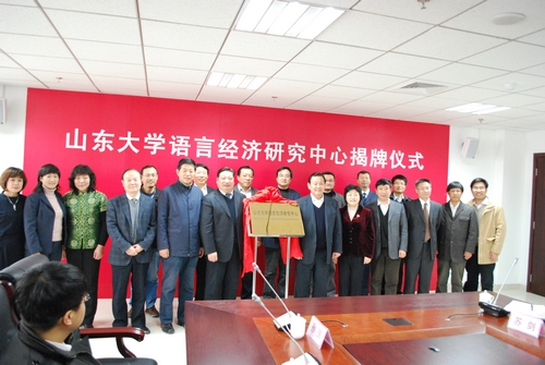 12月26日,山东大学语言经济研究中心成立大会暨语言经济研讨会在中心校区举行。国家语委副主任、国家教育部语言文字信息管理司司长李宇明,山东大学原党委书记朱正昌,山东省原省长助理、省发改委主任费云良,山东大学副校长樊丽明出席成立大会,并共同为山东大学语言经济研究中心揭牌。
