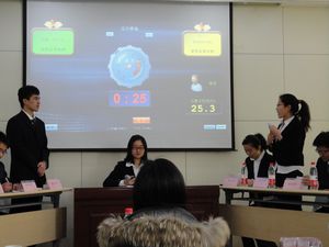 的老师和国辩领队担任评委。我方派出了赵苗、成文凤、夏清滨、姜树广四位优秀辩手出战。