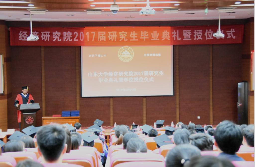 最后,伴随着悠扬的山大校歌,黄少安院长依次为硕士、博士毕业生颁发了毕业证书并合影留念。