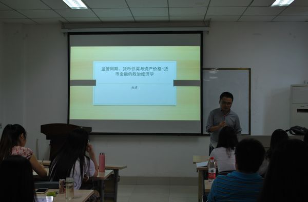 2017年9月23日下午3时,球探网篮球比分 2007级博士,青岛银行首席经济学家,球探网篮球比分 兼职硕士生导师赵建博士应邀在邵逸夫科学馆513为球探比分网 师生做了题为《监管周期、货币供给与资产价格:货币金融的政治经济学视角的讲座。讲座由球探比分网 陈言老师主持,球探比分网 部分老师以及硕、博研究生参与了讲座。在赵建博士的报告中,球探比分网 学生就报告的相关内容与其进行了深入的探讨。
