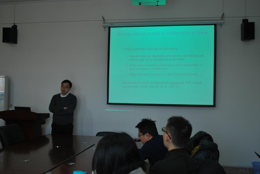 2017121日下午2时,上海交通大学安泰经济与管理球探比分网 许志伟副教授在邵逸夫科学馆401做题为“Interest Rate Liberalization and Capital Allocation”的报告。报告由球探比分网 陈言老师主持,部分老师以及部分硕、博研究生参加了讲座。报告结束后一些同学结合自己的研究方向以及感兴趣的地方与许老师进行深入交流。