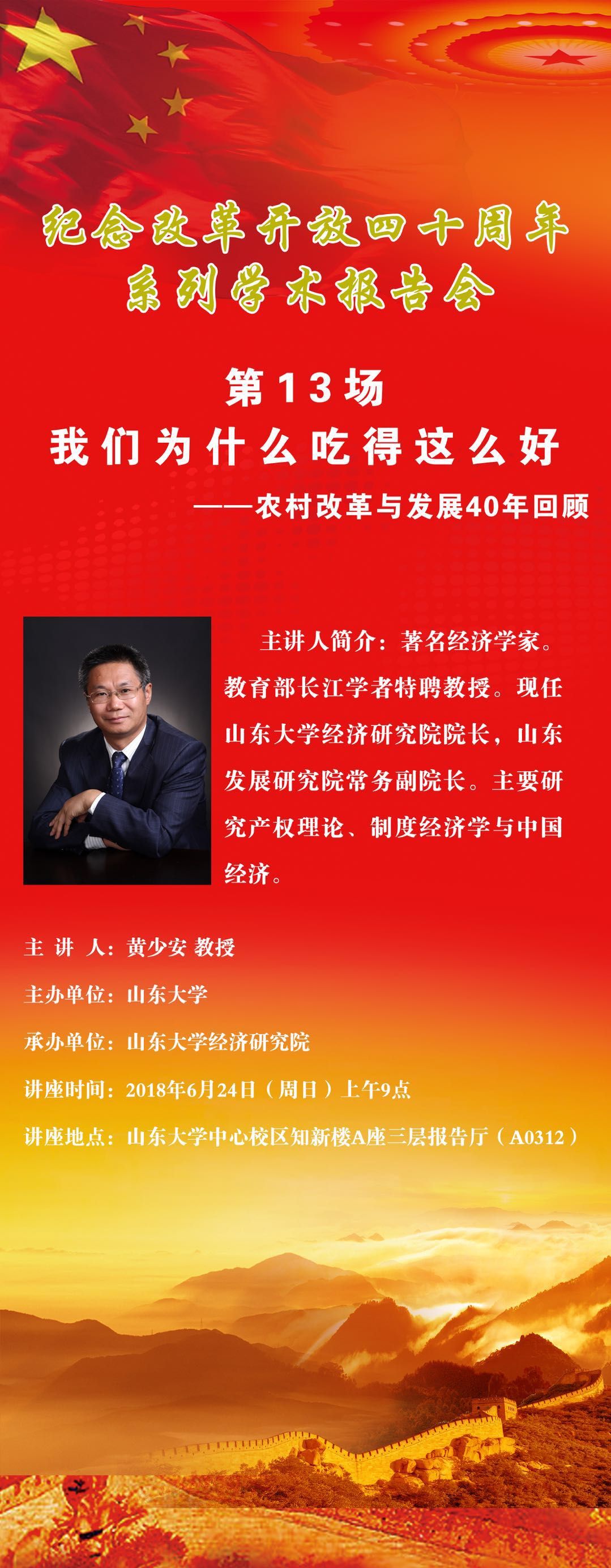 纪念改革开放四十周年系列学术报告会通知——主讲人:黄少安教授