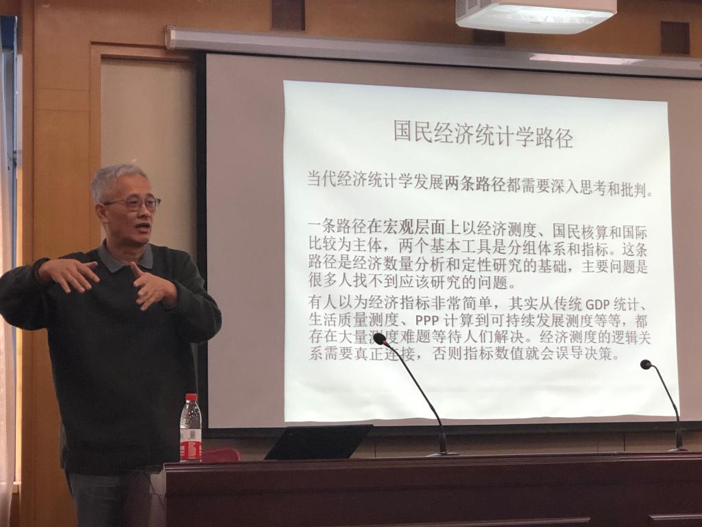 邱东教授就经济统计学发展两条路径进行了深入剖析。邱东教授认为,经济统计学发展的两条路径分别是国民经济统计学路径和数理方法在经济领域应用路径。邱东教授强调,国民经济统计学路径在宏观层面上以经济测度、国民核算和国际比较为主体,两个基本工具是分组体系和指标,这条路径是经济数量分析和定性研究的基础,主要问题是很多人找不到应该研究的问题。对于数理方法在经济领域的应用这一条路径,邱东教授认为它形式上很科学,其主要问题是工具理性至上,不同领域复杂程度大异,无视领域差异是方法应用大忌。“可计算”只是模型有解,并不等于社会经济意义上“可测度”,工具不能替代实质性学科,否则就会沦为“数字炒作”。