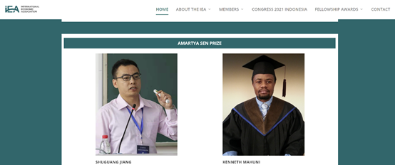 Professor Shuguang Jiang was awarded one of the two Amartya Sen Prizes by the International Economic Association